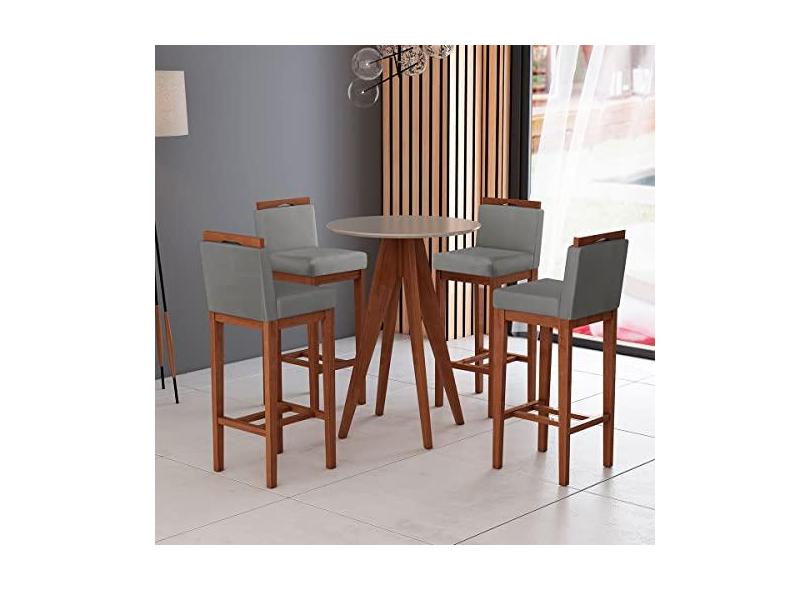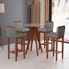 Kit Mesa Bar Gourmet com 4 Banquetas Alta Estofadas Madeira Maciça Suede Cinza CCS
