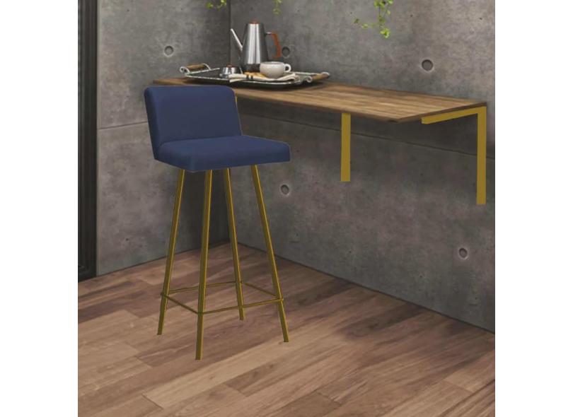 Kit Mesa Suspensa de Parede Fixa mdf Carvalho + 1 Banqueta Lexi Ferro Dourado Sintético Azul Marinho - Ahazzo Móveis
