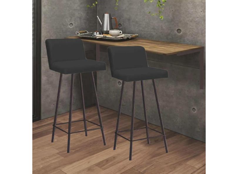 Kit Mesa Suspensa de Parede Fixa mdf Freijó + 2 Banquetas Lexi Ferro Marrom Suede Preto - Ahazzo Móveis