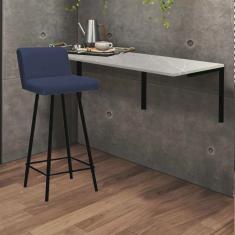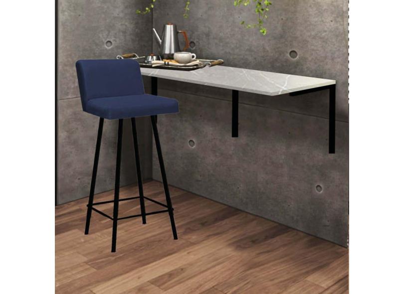 Kit Mesa Suspensa de Parede Fixa MDF Marmorizado + 1 Banqueta Lexi Ferro Preto Sintético Azul Marinho - Ahazzo Móveis