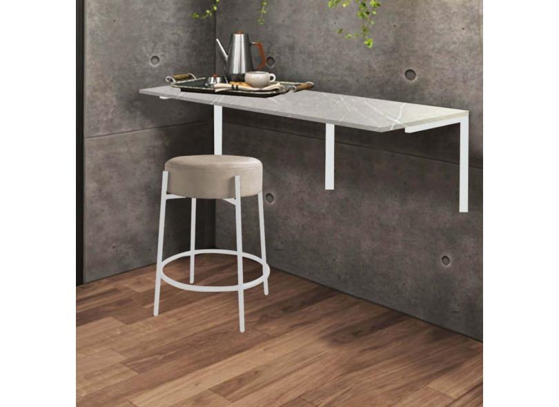 Kit Mesa Suspensa de Parede Fixa MDF Marmorizado + 1 Banqueta Sintra Ferro Branco Sintético Bege - Ahazzo Móveis