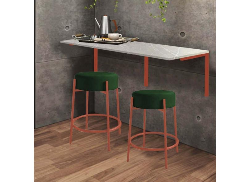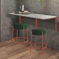 O menor preço encontrado no Brasil para Kit Mesa Suspensa de Parede Fixa MDF Marmorizado + 2 Banquetas Sintra Ferro Cobre Suede Verde - Ahazzo Móveis atualmente é R$ 799,90.