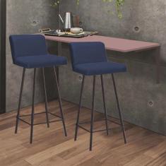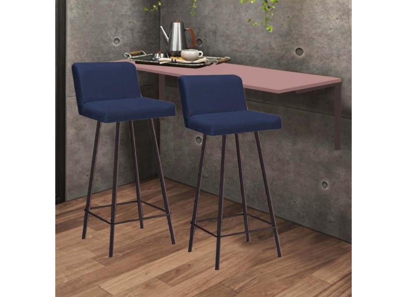 Kit Mesa Suspensa de Parede Fixa MDF Rosa + 2 Banquetas Lexi Ferro Marrom Sintético Azul Marinho - Ahazzo Móveis