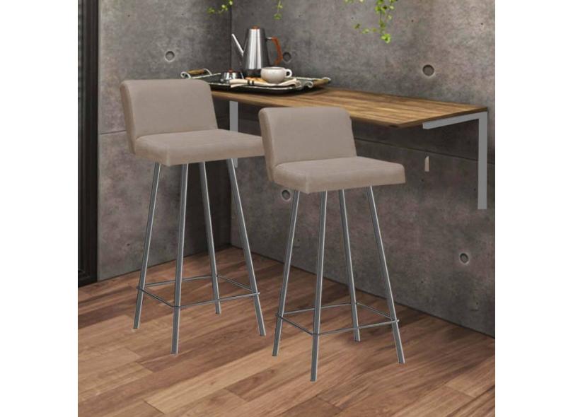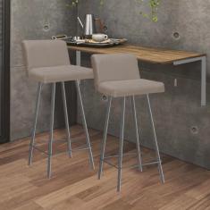 Kit Mesa Suspensa de Parede Fixa MDF Rústico + 2 Banquetas Lexi Ferro Cinza Sintético Bege - Ahazzo Móveis