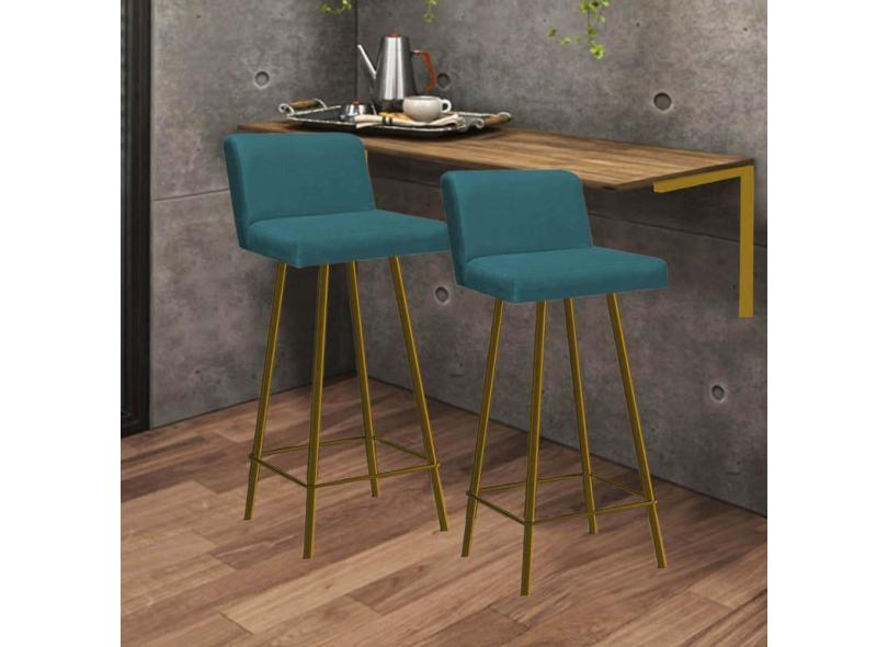 O menor preço encontrado no Brasil para Kit Mesa Suspensa de Parede Fixa MDF Rústico + 2 Banquetas Lexi Ferro Dourado Suede Azul Turquesa - Ahazzo Móveis atualmente é R$ 919,90.