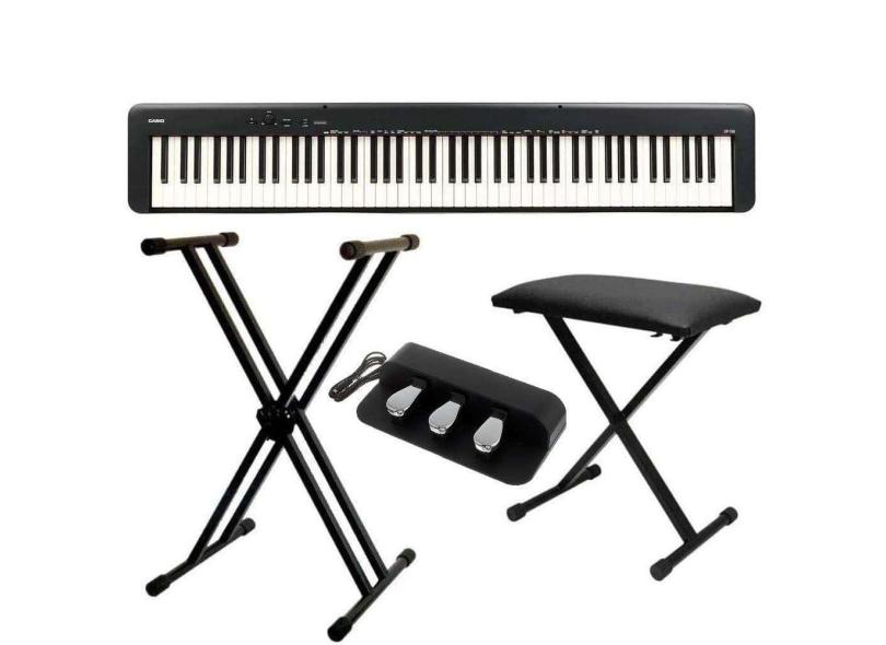 Piano Digital Casio CDP-S160 Preto + Suporte Duplo + Banqueta + Pedal SP-34