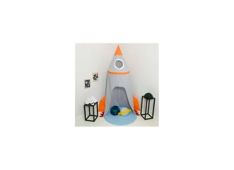 Cabana Infantil Tenda Dossel 05 peças com Tapete - Foguete Cinza