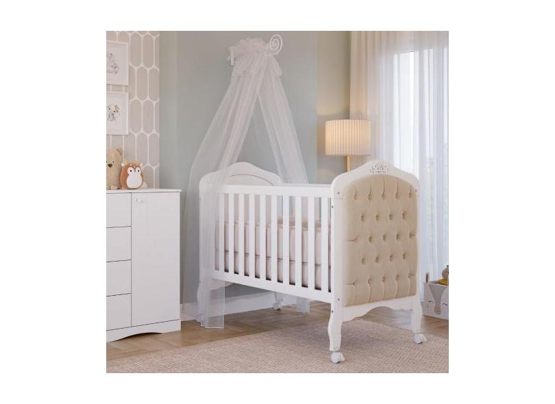 Berço 2 em 1 Capitonê 100MDF Harmonia Permobili, Branco/Marfim
