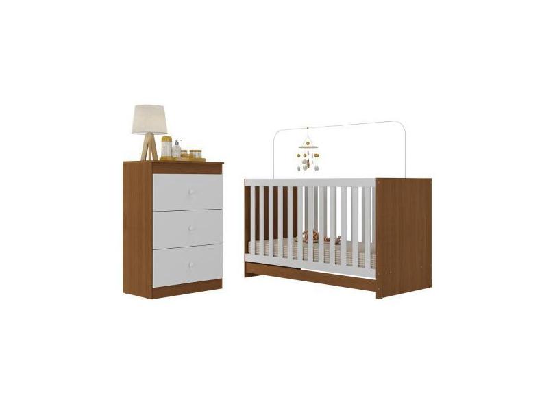 Berço 3 em 1 para Colchão 130 x 60cm com Cômoda 3 Gavetas Doce de Leit