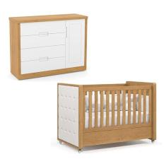 Berço Americano com Capitonê New Boucle e Cômoda Infantil Tutto New Freijó - Matic