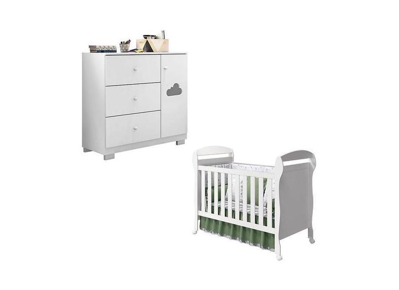 Berço Americano Danny e Cômoda Infantil Ane Branco Brilho Phoenix Bab