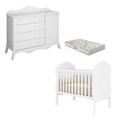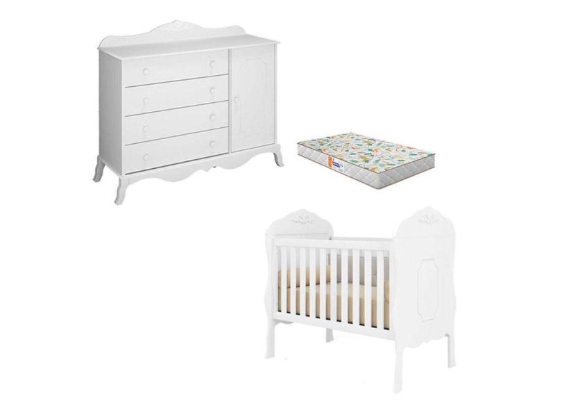 O menor preço encontrado no Brasil para Berço Americano E Cômoda 1 Porta Realeza Branco Acetinado Com Colchão Gazin - Canaã atualmente é R$ 1.764,91.