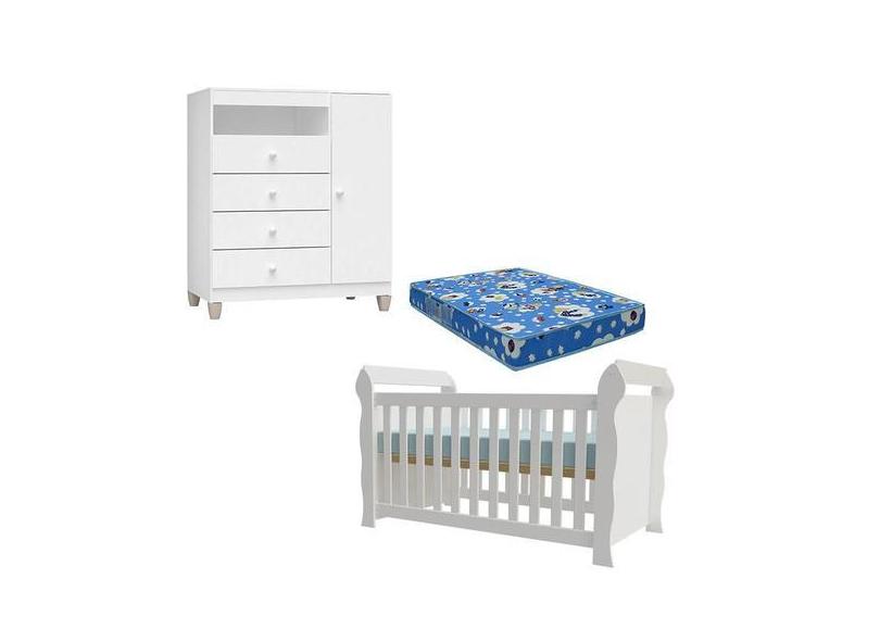 Berço Americano Lara com Colchão e Cômoda Infantil Ternura Baby Branco