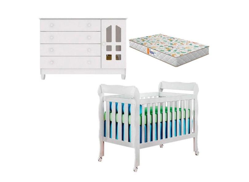 Berço Americano Lila e Cômoda Gran Selena Branco Brilho com Colchão Gazin – Carolina