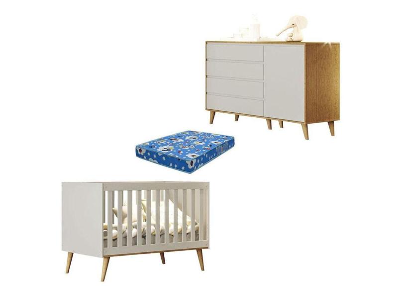 O menor preço encontrado no Brasil para Berço Americano Ludmila E Cômoda Infantil Gran Lorena Off White Bétula Com Colchão Ortobom Baby atualmente é R$ 1.245,92.