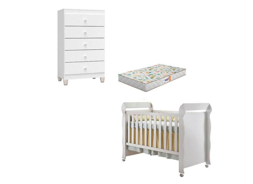 Berço Americano Mirelle com Colchão Gazin e Cômoda Gaveteiro Ternura Baby Branco Brilho - Incorplac