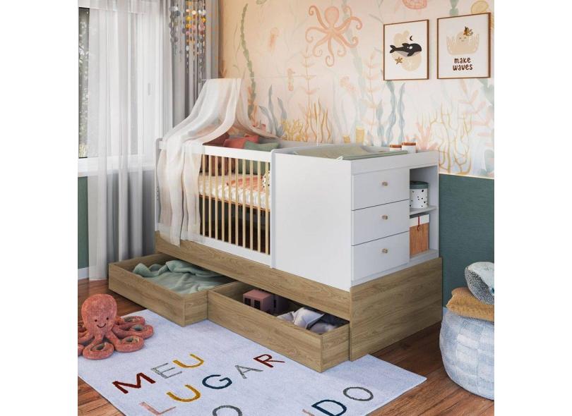 O menor preço encontrado no Brasil para Berço Cama Bebê Multifuncional 3 Gavetas Aveiro Oak/Branco - Completa Móveis atualmente é R$ 1.343,23.