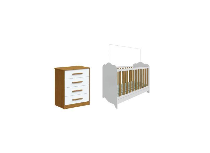 Berço Clara e Cômoda Charlo 04 gavetas Moveis Peroba MDF, Branco Amênd
