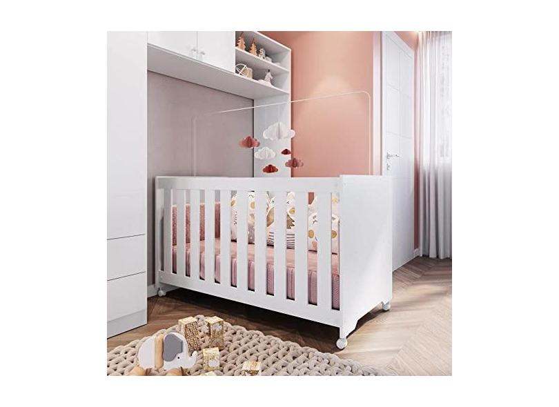 Berço com Colchão e Rodízios Aconchego Completa Móveis