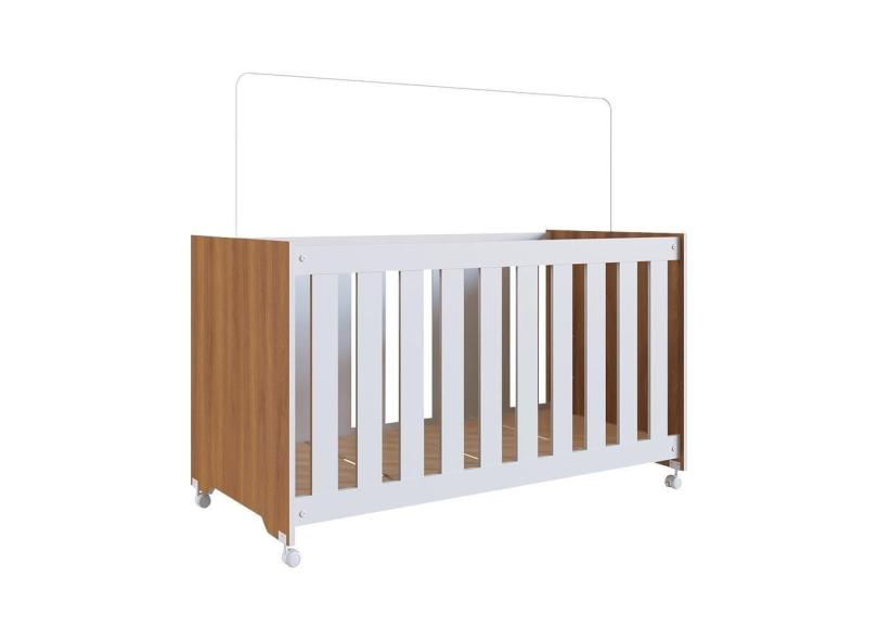 Berço Com Colchão Rodinhas Altura Regulável 64 x 133 cm Marrom Branco Manny Shop JM