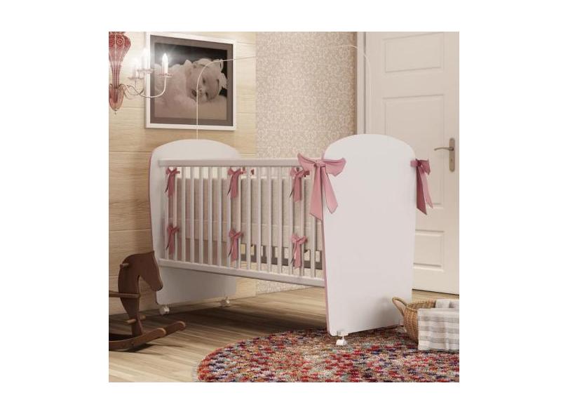 Berço com Rodizio Corujinha Percasa, Branco com Rosa