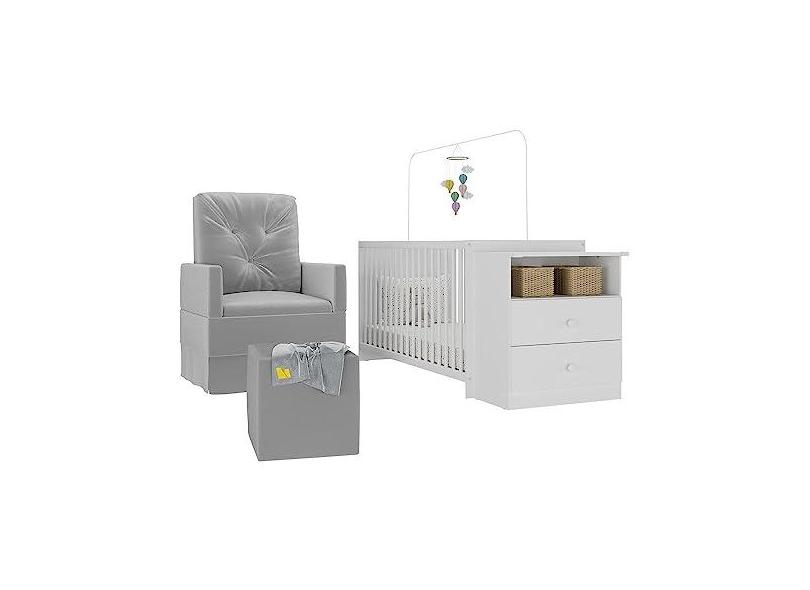 O menor preço encontrado no Brasil para Berço Cômoda com Poltrona de Amamentação e Puff Meu Bebê Multimóveis Mp4078 Branco/cinza atualmente é R$ 1.099,99.