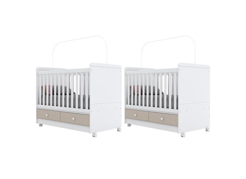 Berço / Mini Cama Infantil Aquarela 3 em 1 c/ 2 Gavetas (2 Un) Cristal/Branco - Henn
