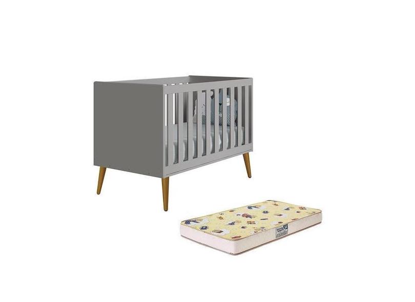Berço Mini Cama Theo Retrô Cinza Fosco com Pés Amadeirado e Colchão D1