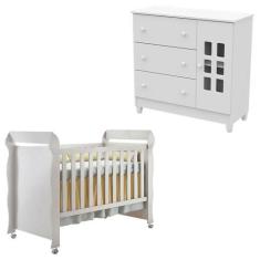 Berço Mirelle E Cômoda Infantil Mariah Branco Brilho - Carolina - CARO