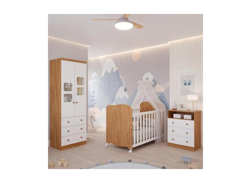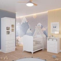 Quarto Bebe Completo Berço Americano Uli Guarda Roupa 2 Portas Uli Gaveteiro 3 Gavetas Smim 100% MDF