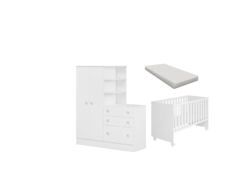 O menor preço encontrado no Brasil para Quarto Bebê Guarda Roupa 2 Porta 3 Gavetas Berço E Colchão Espuma D-18 Branco Móveis Leartam atualmente é R$ 829,00.