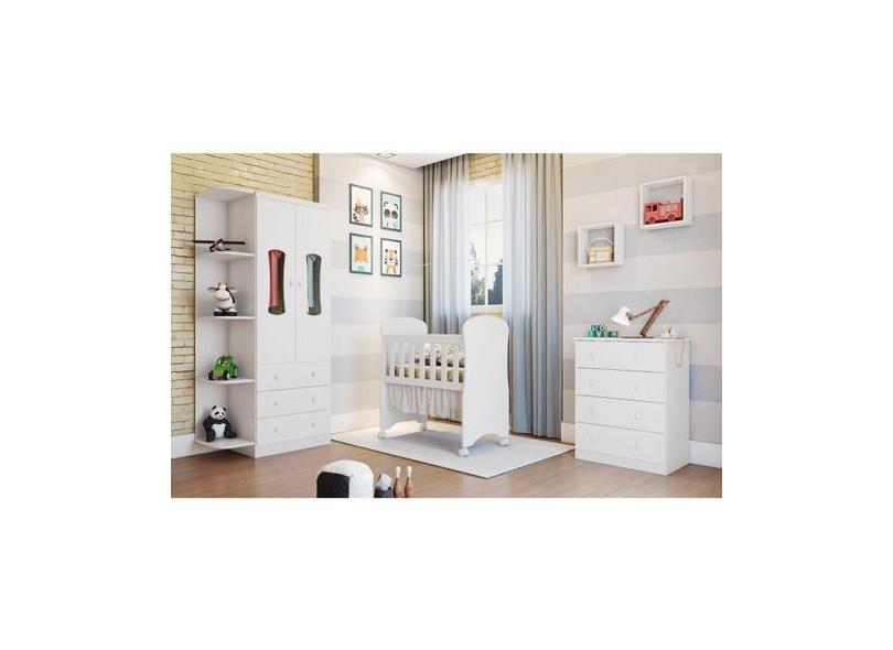 Quarto Completo Bebê Moveis Peroba mini berço Luna MDF, Branco