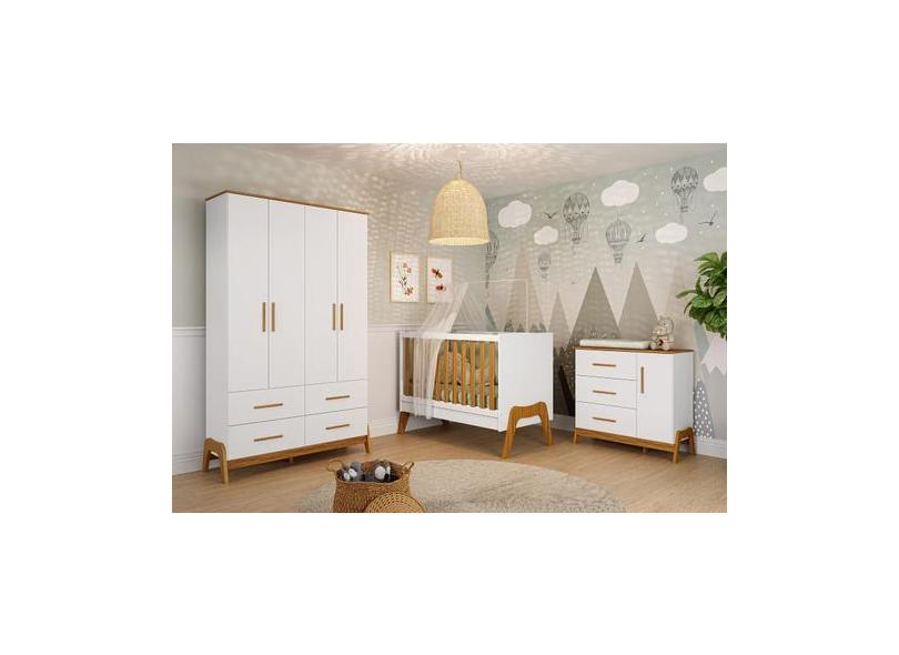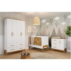 Quarto Completo Retro Bebê Moveis Peroba Guti berço 5x1 , Branco Amênd