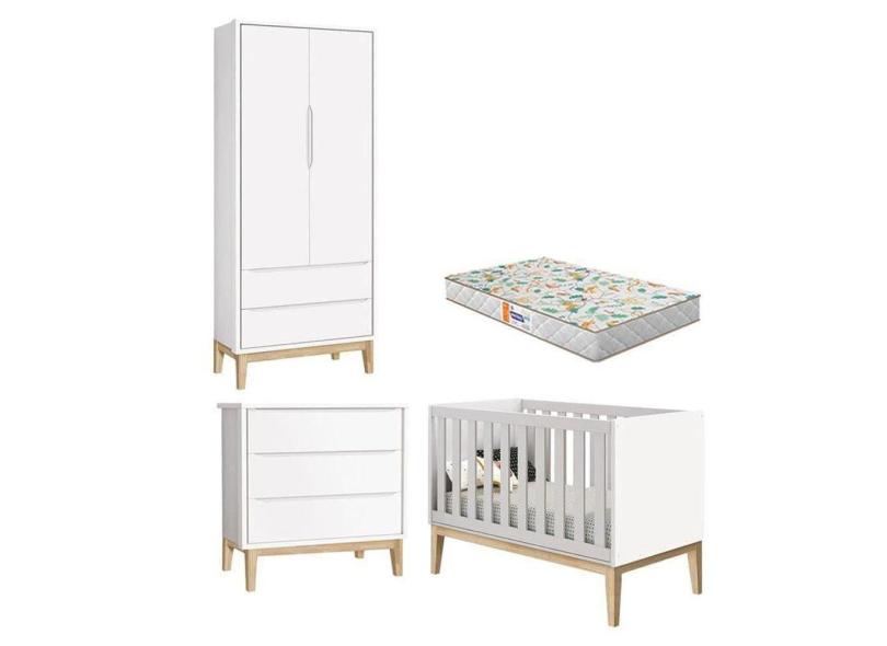 O menor preço encontrado no Brasil para Quarto De Bebê 2 Portas E Cômoda Gaveteiro New Classic Branco Com Pés Madeira Natural E Colchão Gazin - Reller atualmente é R$ 2.040,30.