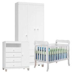Quarto De Bebê 3 Portas Ternura Baby Com Berço Lila Branco Brilho - Incorplac