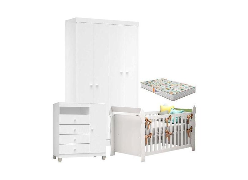 Quarto de Bebê 4 Portas Ternura Baby com Berço Lara Branco Brilho com