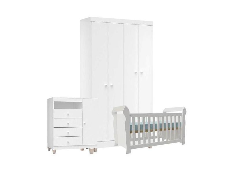 Quarto de Bebê 4 Portas Ternura Baby com Berço Lara Branco Brilho - In