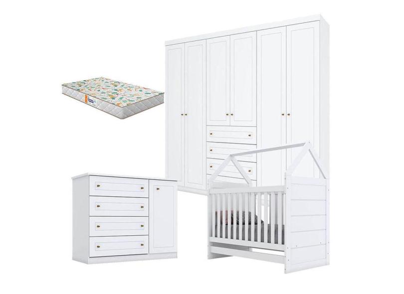 O menor preço encontrado no Brasil para Quarto de Bebê Americano 6 Portas com Berço Montessoriano Branco HP e Colchão Gazin - Henn atualmente é R$ 3.085,20.
