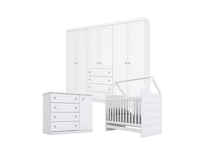 Quarto de Bebê Americano 6 Portas com Berço Montessoriano Branco HP -