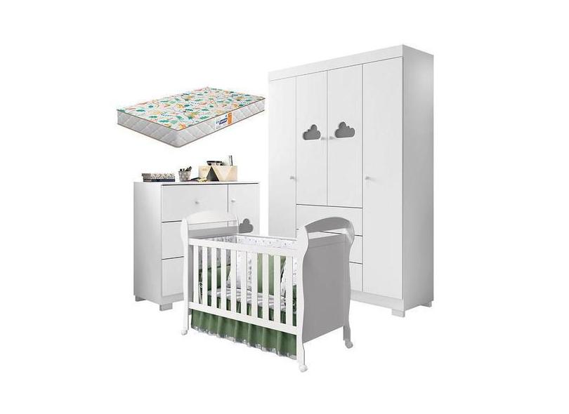 Quarto de Bebê Ane com Berço Americano Danny Branco Brilho e Colchão G
