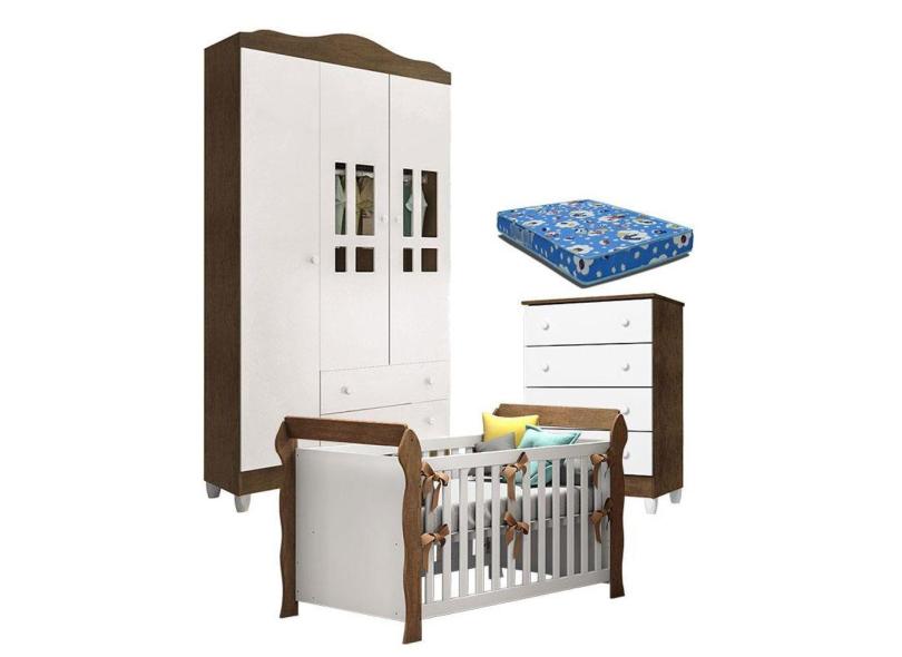 O menor preço encontrado no Brasil para Quarto de Bebê Ariel 3P Gaveteiro e Berço Lara Branco Acetinado Amadeirado com Colchão - Carolina atualmente é R$ 1.261,08.