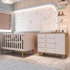 Quarto de Bebê Berço 3 em 1 Retrô Ligia Cômoda com Fraldário Ludmila O