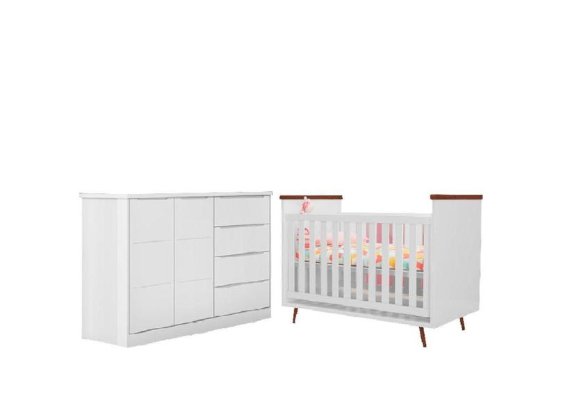 Quarto de Bebê Berço Americano Baby Wood e Cômoda Infantil Diamante 100% MDF Cor Branco com Amadeirado - Phoenix Baby