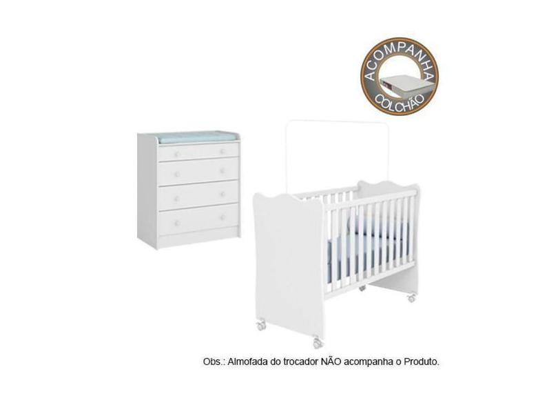 Quarto de Bebê Berço c/ Rodízios Colchão Light e Cômoda Doce Sonho Bra