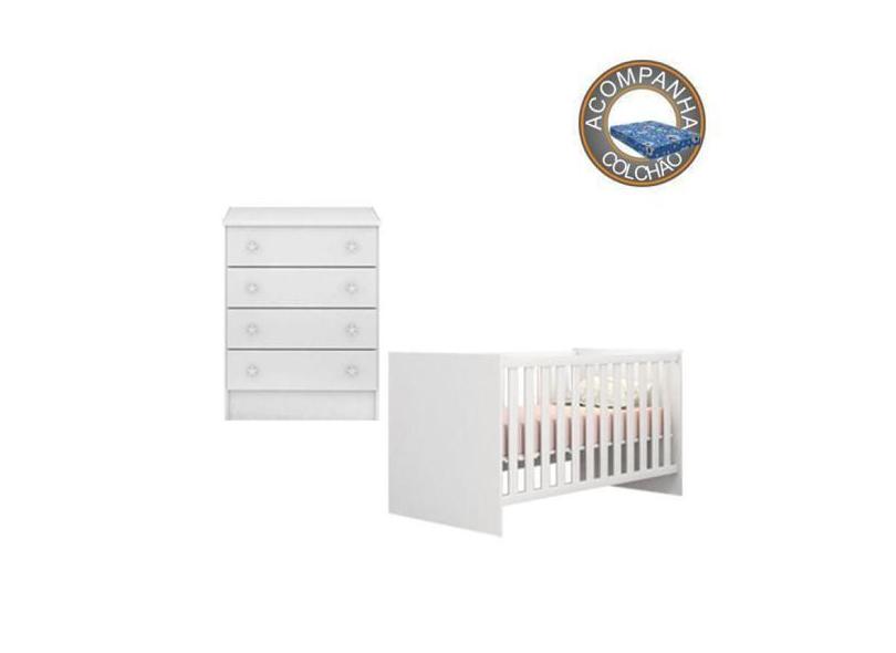 O menor preço encontrado no Brasil para Quarto de Bebê Berço Colchão Physical e Cômoda Doce Sonho Branco Qmovi atualmente é R$ 806,55.