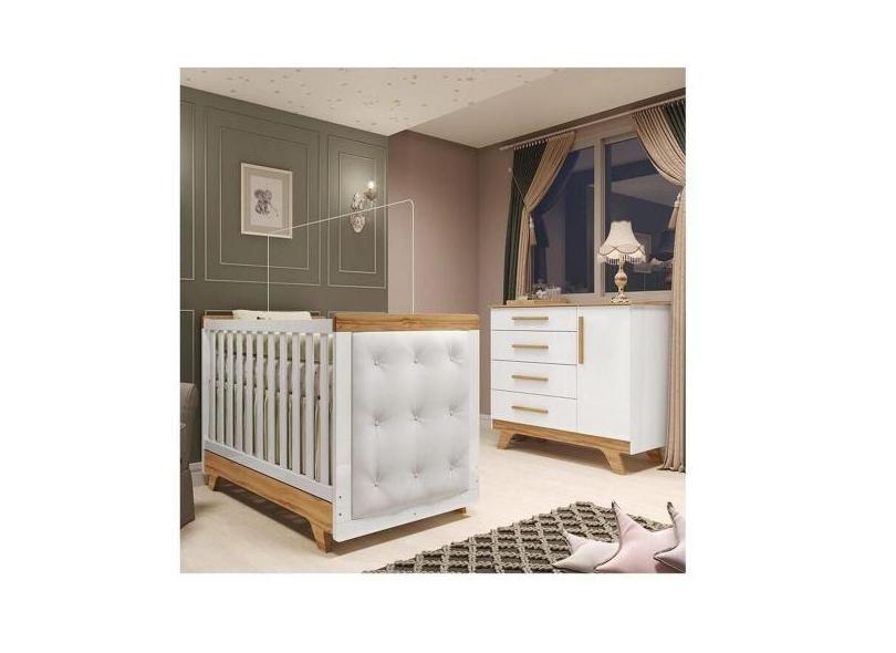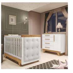 Quarto de Bebê Berço com Capitonê e Cômoda 100% Mdf Retrô Kakau Espres