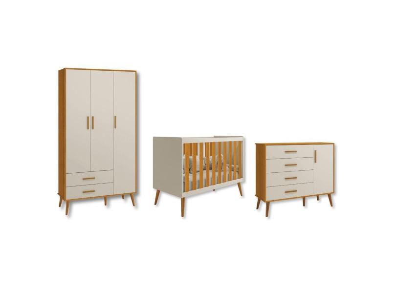 O menor preço encontrado no Brasil para Quarto de Bebê Berço + Cômoda + Guarda Roupa Isis Areia Fosco com Amadeirado atualmente é R$ 1.799,03.
