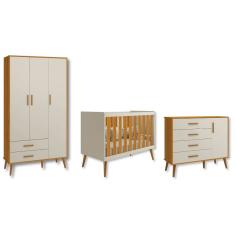 Quarto de Bebê Berço + Cômoda + Guarda Roupa Isis Areia Fosco com Amadeirado