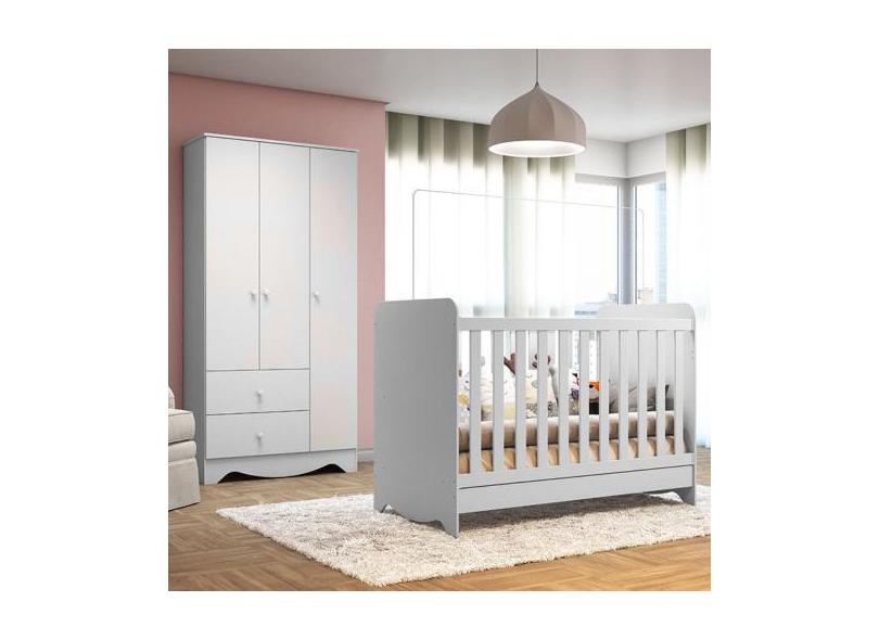 Quarto de Bebê Berço e Guarda-Roupa 3 Portas Ben MDF Móveis Peroba, Br