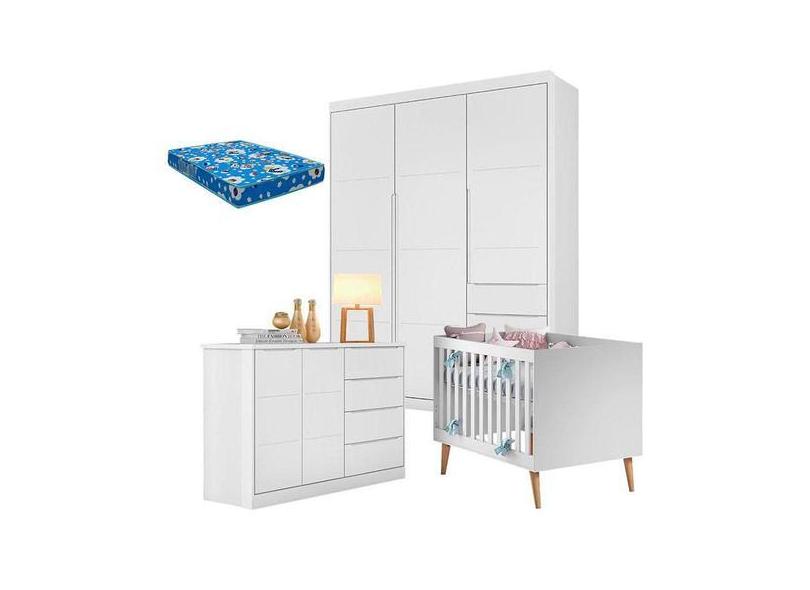Quarto de Bebê Blenda e Berço Americano Ludmila Branco Acetinado com C